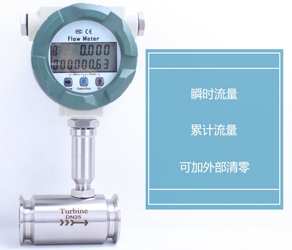 涡轮流量计是采用一体化涡轮流量计结构为防爆设计,可以显示流量总量,瞬时流量和流量满度百分比。电池采用长效锂电池,单功能积算表电池使用寿命可达5年以上,多功能显示表电池使用寿命也可达到12个月以上。涡轮流量计是一体化表头可以显示的流量单位众多,有立方米,加仑,升,标准立方米,标准升等,可以设定固定压力、温度参数对气体进行补偿,对压力和温度参数变化不大的场合,可使用该仪表进行固定补偿积算。