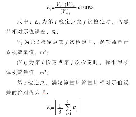实验中每个流量点均进行3次测量,(j=1,2,3),3次测量的平均仪表系数作为此流量点的仪表系数Ki(i=1,2,3,4,5),各流量点仪表系数*小值与*大值的平均值,作为传感器的仪表系数。