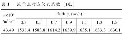 实验测得在流体介质的粘度为43.49cSt条件下,DN10口径的涡轮流量传感器在各个实验流量点的仪表系数Ki如表1所示。