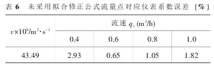 表2为各对应流量点的拟合后仪表系数的误差。