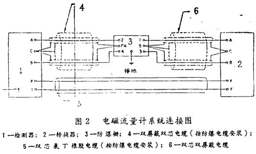 它把从检测器来的电势(mv)信号,转换成统一的4一20mA直流信号,从+I和I-端输出,便于与统一的单元组合仪表配套使用,如调节器的测量,记录仪等。转换器的数字显示面板能指示出当前的瞬时流量(100%刻度)。转换器的脉冲输出端为P+和P一。电源为交流120伏,系统连接见图2。