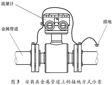 焦油流量计安装在金属管道上,安装时将金属管道与焦油流量计相连接,接地线再接入接地网,如图 3 所示。