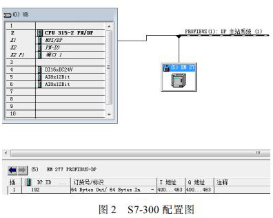 S7-300 控制器与 S7-200 控制器之间的通讯是实现系统数据采集的关键,EM277 可以方便的实现 S7-300 与 S7-200 之间的 PROFIBUS DP 通讯,只需要在 STEP7 中进行 S7-300 控制站的组态,简单配置 EM277 设备。选中 STEP7 的硬件组态窗口中的菜单 Optionà Install new GSD,导入 SIEM089D.GSD 文件,安装 EM277 从站配置文件。导入 GSD 文件后,在右侧的设备选择列表中找到 EM277 从站,根据需要的通讯字节数,选择一种通讯方式。本文中需要通讯的数据量比较大,选择了*大的 64 字节输入/64 字节输出的配置。S7-300 的硬件下载完成后,将 EM277 的拨位开关拨到与以上硬件组态的设定值一致。