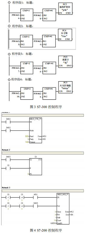 在 S7-200 系统中不需要对通讯进行组态和编程,只需要将要进行通讯的数据整理存放在 V 存储区,与 S7-300 组态 EM277 从站时的硬件 I/O地址相对应就可以了。控制器中的程序如图 3、 图 4 所示。V4.0 STEP 7 MicroWIN SP6 中循环处理数据,调用“MBUS_CTRL_P1”和“MBUS_MSG_P1”功能,安装设定的步序采集下表所示的设备数据,将数据循环放置在配置的通讯区中 V 变量区,并为读取的数据设置数据包号码,以方便 S7-300进行识别。
