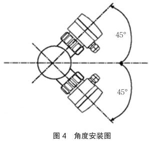 垂直安装时确保流向由下而上,如图 4 中箭头所示,应与管道水平中心线成 45 度角安装防冻液流量表