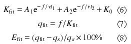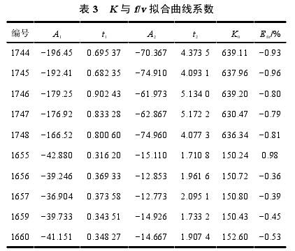 利用双指数衰减函数对仪表系数与雷诺数关系进行拟合,在层流范围内(Re<2300),仪表系数随Re增加迅速增加,尤其是在Re<1000范围内更加明显;而在Re>3000紊流范围内,仪表系数变化平缓,接近常数;在10003000的稳定仪表系数。