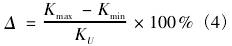 式中:Kmax为同**量点下不同工况下仪表系数*大值;Kmin为同**量点下不同工况下仪表系数*小值。