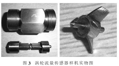 实验采用口径为DN10的涡轮流量传感器,如图3所示。实验中选择10℃进行实验测试,对应的流体介质的粘度为43.49cSt。选取0.3m3/h、0.5m3/h、0.7m3/h、0.9m3/h、1.1m3/h、1.3m3/h和1.5m3/h共7个流量点进行,实验流量范围为0.3m3/h到1.5m3/h。