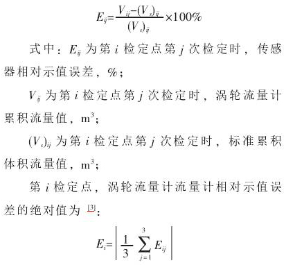 实验中每个流量点均进行3次测量,(j=1,2,3),3次测量的平均仪表系数作为此流量点的仪表系数Ki(i=1,2,3,4,5),各流量点仪表系数*小值与*大值的平均值,作为传感器的仪表系数。