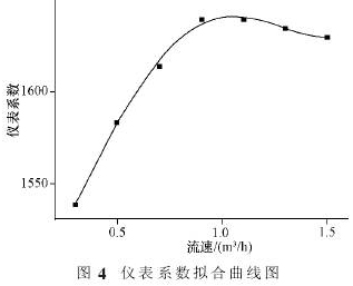 使用Origin软件中的四次多项式polynomial拟合公式,使用*小二乘法,得到如下函数,其中流速为自变量X,仪表系数为因变量Y:
