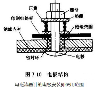 传感器的电*安装在与磁场垂直的测量管两侧管壁上,它的作用是把被测介质切割磁力线所产生的电势信号(流量信号)引出,因此电*一般需直接与被测介质接触,其典型结构如图7-10所示。