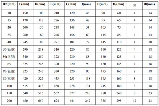 *DN10/DN50(轻型)/DN65/DN80(轻型)法兰尺寸为 1.6MPa 标准;其余口径为 6.4MPa 标准;