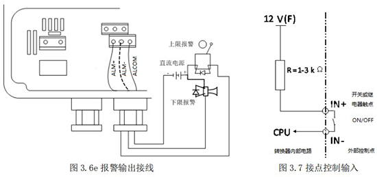 3.4.6 外部控制接点输入(IN+、IN-)由开关或继电器触点 ON/OFF 控制,见图 3.7。