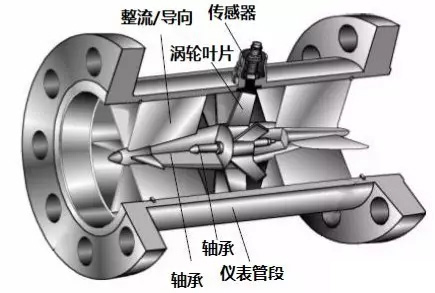 下图就是一款智能一体化涡轮流量计的透视图,可以看到流量计的管道中心安放了一个涡轮,涡轮两端由轴承支撑。