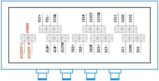 ①仪表电源:AC220V火线接“L”端子,零线接“N”端子。