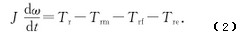 式(2)中:J—叶轮的转动惯量;t—时间;ω—叶轮的转速;Tr—推动力矩;Trm—机械摩擦阻力矩;Trf—流动阻力矩;Tre—电磁阻力矩。