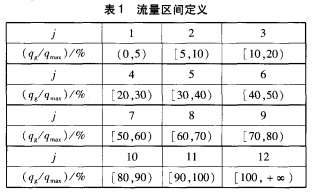 在规定的数据采集时间里,以系统采集的每台流量计瞬时工况流量qg出现在(20%~90%)qmax(qmax为流量计*大计量工况流量)计量区间频数累加和,与(0~100%)qmax频数(不含工况流量qg为0的频数)累加和之比为主要判别依据,压力传感器、温度传感器采样值为辅助评估依据。