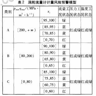 ③确立报警后的处理等级。涡轮流量计计量风险预警模型按pmaxqmax的大小将客户流量计分为3类,其中A类(重点客户)、B类(主要客户)两类为重点监测项目,要求处理等级与信息反馈速度比C类(普通客户)高。这种分类方法突出了计量管理重点,确立了调配有限资源的指导方针。