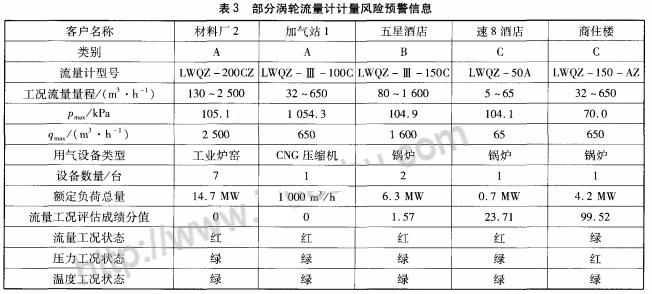 表3是建立涡轮流量计计量风险预警系统后,得到的部分涡轮流量计计量风险预警信息。
